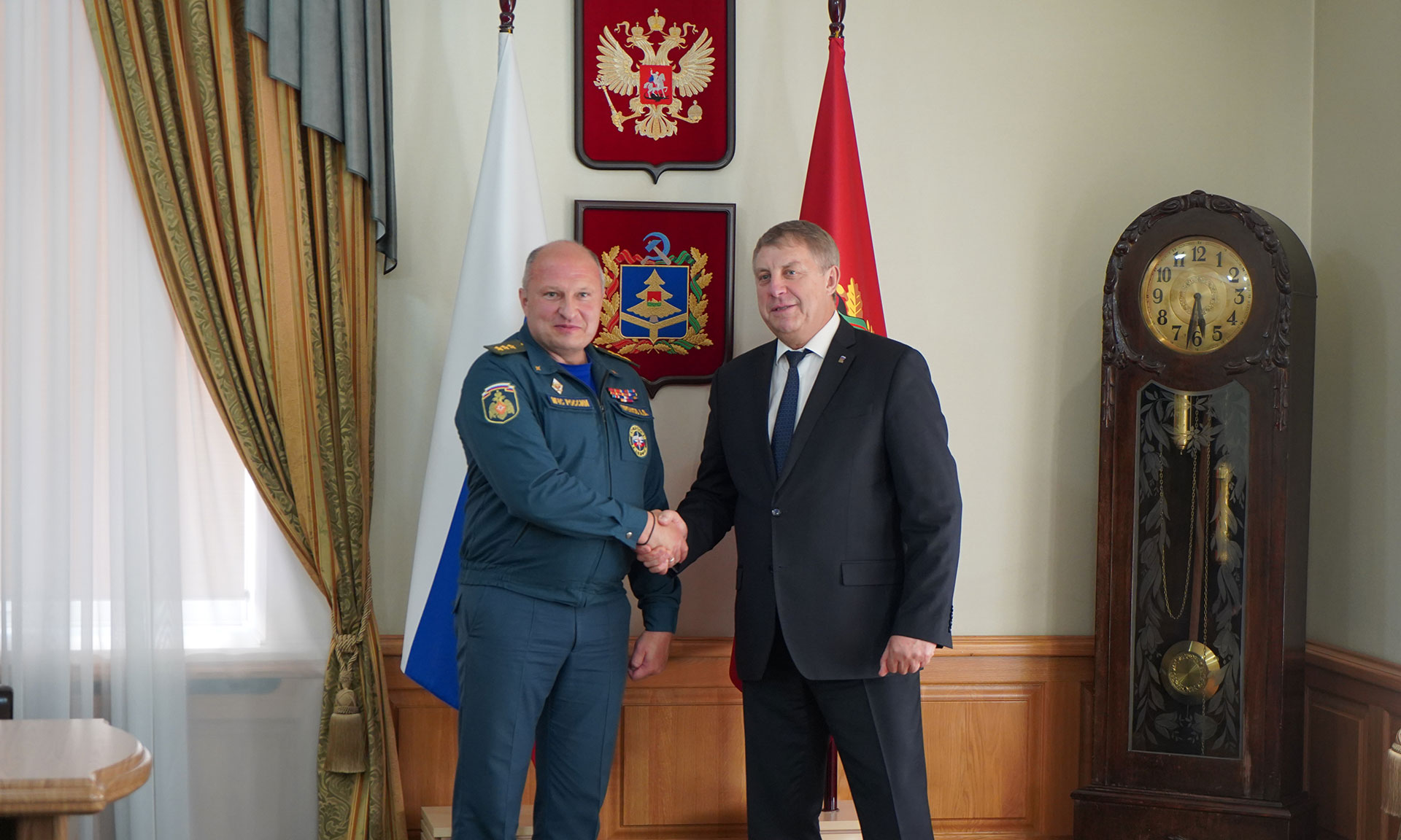 Состоялась рабочая встреча Министра РФ по делам гражданской обороны, чрезвычайным ситуациям и ликвидации последствий стихийных бедствий Александра Куренкова и Губернатора Брянской области Александра Богомаза.