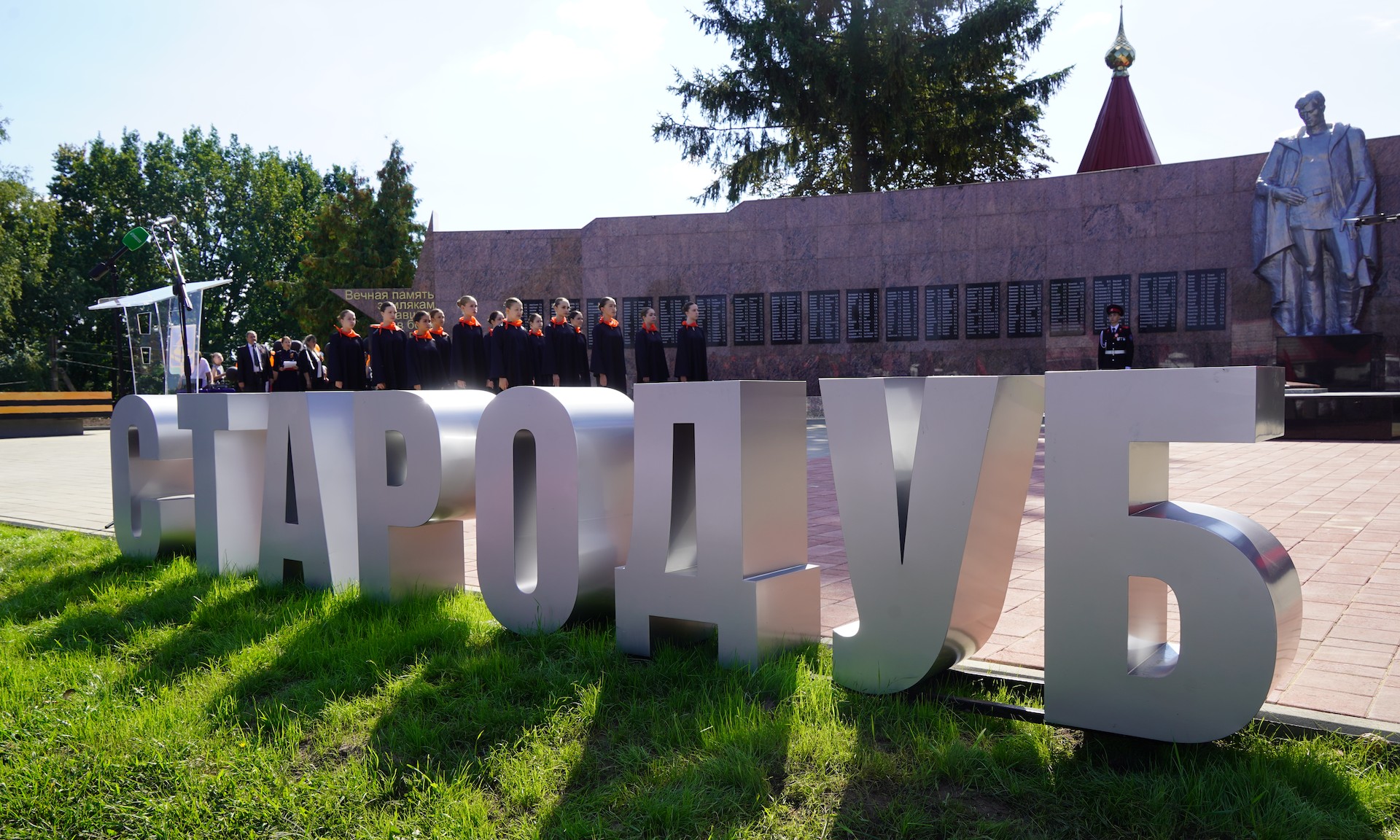 — Мемориальный комплекс «Стена Памяти» — священное для каждого жителя Стародубской земли место. На ней высечено 1080 имен наших земляков, которые были жителями города Стародуба и не вернулись с полей сражений.