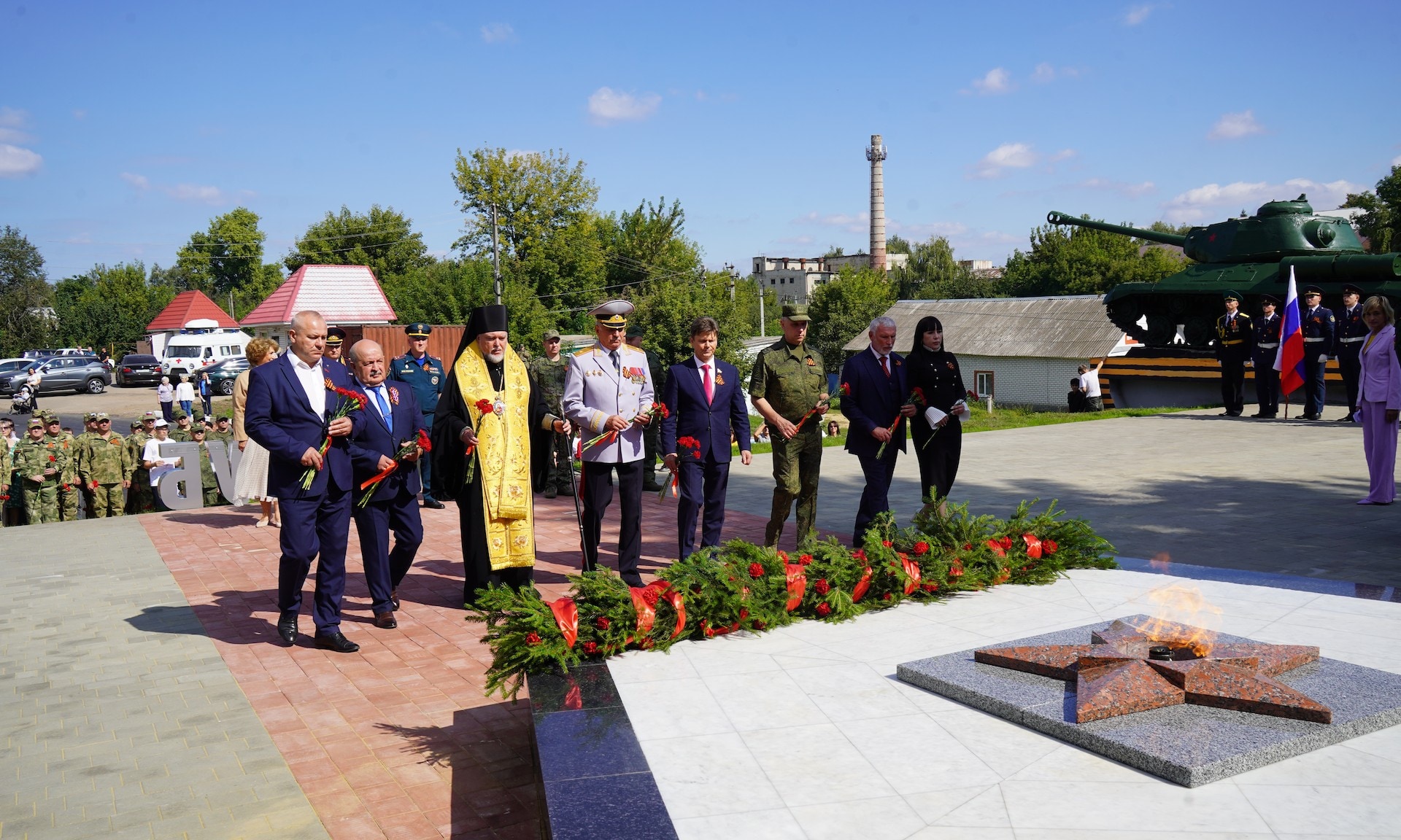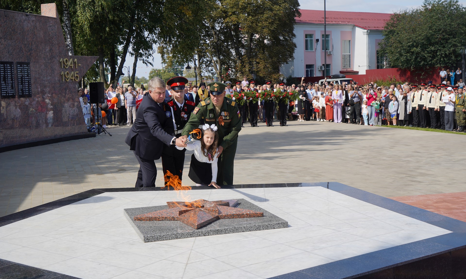 Почётное право зажечь Вечный огонь было предоставлено Губернатору Брянской области Александру Богомазу, Денису Комякову, Варваре Кулик и Артёму Быкову.