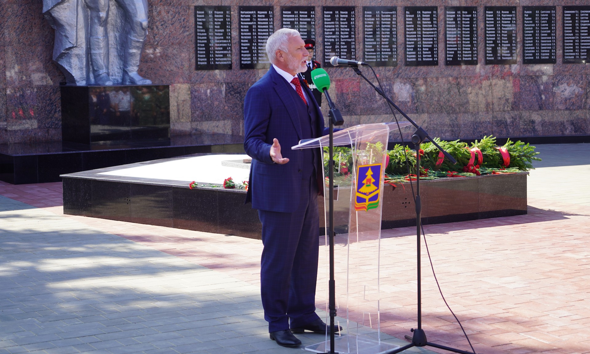 — Трудно переоценить значимость сегодняшнего события. Всего несколько километров нас отделяют Украины, и мы видим, как эти люди забывают всё, что у них было: собственный язык, культуру, историю, традиции, забывают всё, в том числе и своих предков, которые кровью полили эту землю. А мы не забудем никогда! Правильные слова: «Никто не забыт и ничто не забыто!»