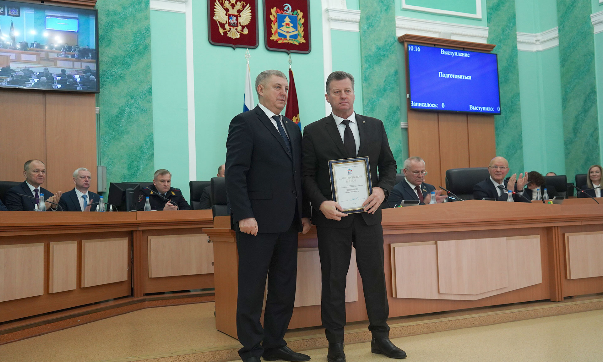Губернатор Александр Богомаз вручил благодарности руководства партии «Единая Россия» за активное участие в волонтерской миссии руководителям муниципальных образований, а также депутатам областной Думы. Их самоотверженная работа стала весомым вкладом в общее дело поддержки наших бойцов на передовой.