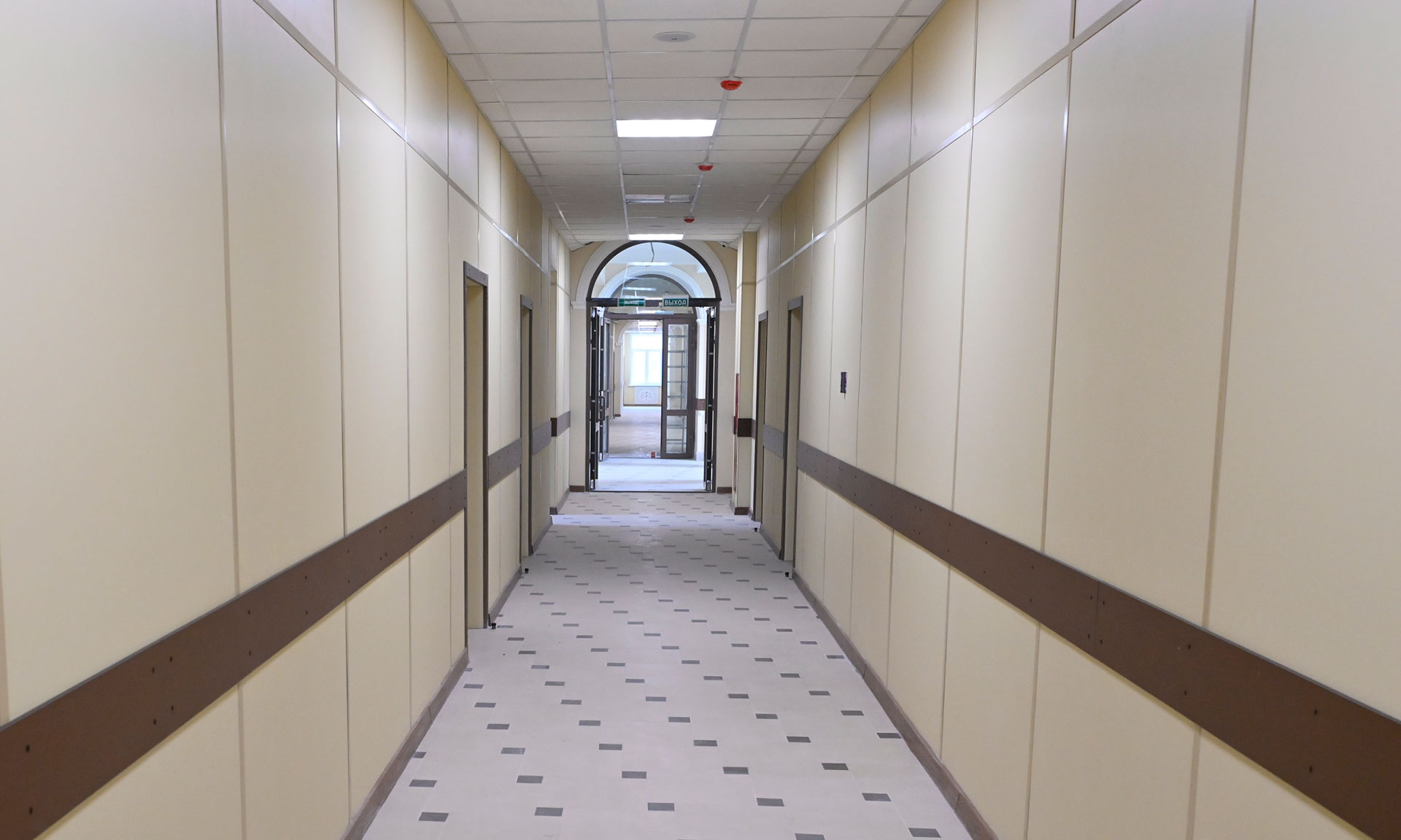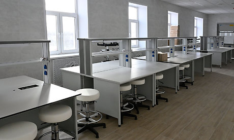 Завершены отделочные работы, установлены двери, завозится мебель, комплектуются лабораторные помещения. Сейчас строители работают в цокольном этаже — там обустраивают пищеблок и столовую, гардероб.