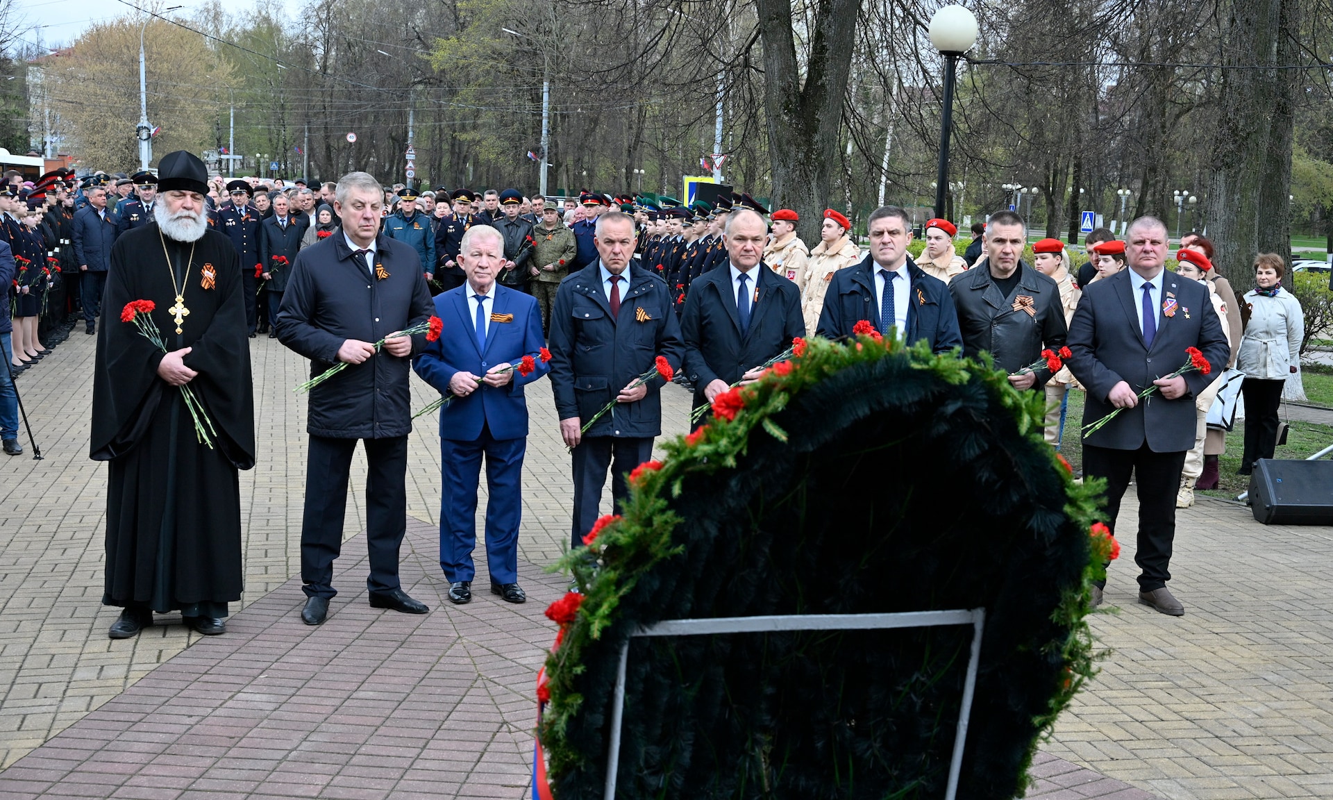 Цветы к подножию памятника жертвам чернобыльской катастрофы возложили Губернатор Брянской области Александр Богомаз, заместитель председателя Брянской областной Думы Николай Якушенко, федеральный инспектор по Брянской области Игорь Фильченков, депутат Государственной Думы Федерального Собрания Российской Федерации Николай Щеглов, Герой Российской Федерации, временно исполняющий обязанности заместителя Губернатора Брянской области Андрей Фроленков, Герой Российской Федерации, председатель постоянного комитета Брянской областной Думы по молодежной политике, физической культуре и спорту Александр Постоялко, председатель правления Брянской областной общественной организации инвалидов-чернобыльцев «Союз Чернобыль» Вячеслав Карнюшин, заведующий отделом по взаимоотношениям Церкви и общества Брянской епархии иеромонах Корнилий (Недбаевский), руководители судебных органов, прокуратуры и силовых структур Брянской области, заместители Губернатора Брянской области, руководители города Брянска, руководители федеральных территориальных органов государственной власти Брянской области, руководители органов исполнительной власти, депутаты Брянской областной Думы и Брянского городского Совета народных депутатов, участники ликвидации аварии на Чернобыльской АЭС, жители города Брянска.